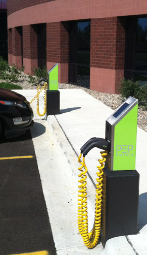 Each PEP Station is a dual Level 2(208-240V/30A) commercial charging station that charges two plug-in electric cars simultaneously.